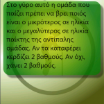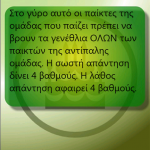 Είναι ένα παιχνίδι που πωλείται έναντι €0,99, αλλά μπορείτε να το κατεβάσετε δωρεάν για δοκιμή. Το παιχνίδι αποτελείται από 4 γύρους ερωτήσεων γενικών γνώσεων και 4 bonus γύρους.Σε κάθε γύρο έκαστη ομάδα απαντά σε 5 ερωτήσεις γνώσεων. Στο τέλος του γύρου, η ομάδα που έχει δώσει τις λιγότερες σωστές απαντήσεις παίζει στον επόμενο bonus γύρο.