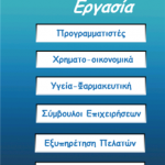 Με το “Βρες εργασία” έχετε τη δυνατότητα να πλοηγηθείτε σε πληθώρα ενεργών αγγελιών για εργασία, ανά κατηγορία ενδιαφέροντος καθώς επίσης και με δυνατότητα search με κάποιες λέξεις κλειδιά.