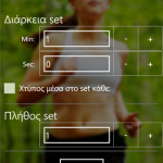 Η εφαρμογή λειτουργεί έξυπνα και απλά. Σας επιτρέπει να ορίσετε τον χρόνο που είναι το set, τον αριθμό των set καθώς και τον χρόνο του διαλείμματος μεταξύ των set.