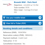 Υποστηρίζονται οι υπηρεσίες Thalys, Eurostar, ICE και Fyra, απευθείας στην οθόνη του κινητού σας τηλεφώνου. Αποτελεί έναν από τους πιο εύκολους και γρήγορους τρόπους για να αγοράσετε το εισιτήριό σας για το τρένο.