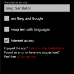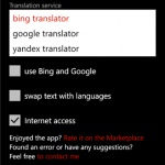 H συγκεκριμένη εφαρμογή θα σας επιτρέψει να μεταφράσετε λέξεις ή φράσεις με την χρήση του Bing ή Google translator, ενώ έχετε επίσης τη δυνατότητα να πραγματοποιήσετε εκφώνηση, αποστολή και αποθήκευση στα αγαπημένα σας.