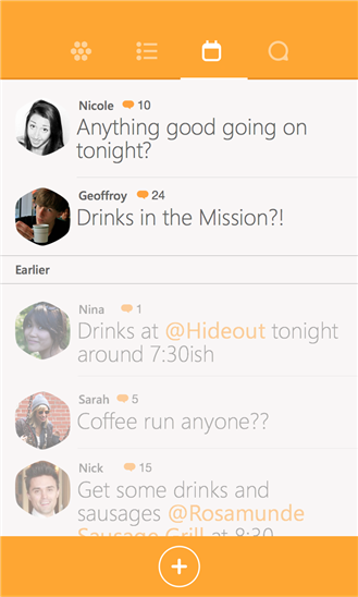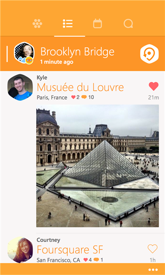 Μπορείτε μέσω της εφαρμογής να κάνετε Check in σε τοποθεσίες, να στείλετε μηνύματα σε φίλους και όσους είναι κοντά σας ή να μοιραστείτε μία εμπειρία με όσους σας ακολουθούν.
