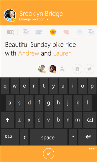 Μπορείτε μέσω της εφαρμογής να κάνετε Check in σε τοποθεσίες, να στείλετε μηνύματα σε φίλους και όσους είναι κοντά σας ή να μοιραστείτε μία εμπειρία με όσους σας ακολουθούν.