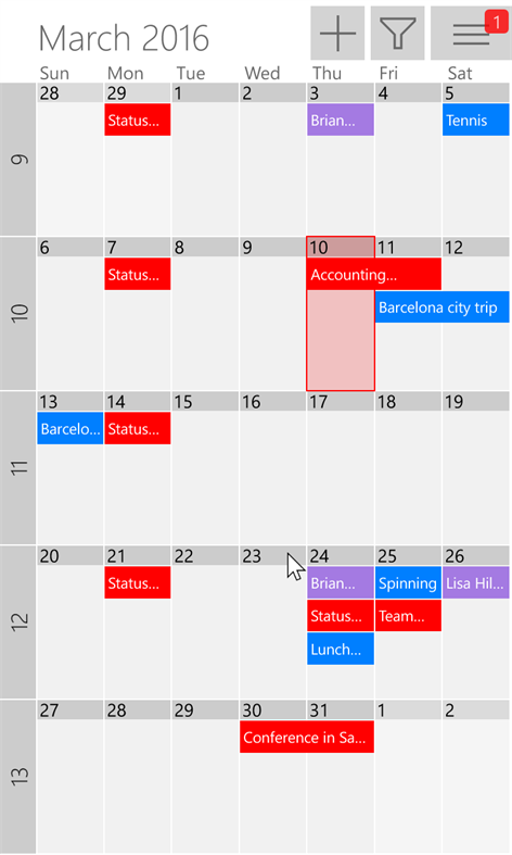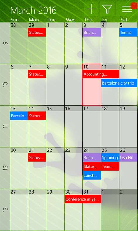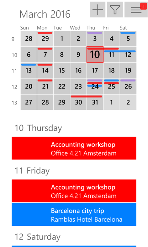 apps-52334-9007199266538018-3bb60836-7261-47b8-a084-51423f3fd123-3f4618e5-9b36-47d5-b2d5-db3b90741718Η εφαρμογή αυτή ενσωματώνει όλα τα ημερολόγιά σας σε μία εύκολη στην ανάγνωση επισκόπηση. Μπορείτε να προβάλετε και να διαχειριστείτε όλες τις συναντήσεις, τις εκδηλώσεις και τα γενέθλιά σας. Ενώ πολύ εύκολα έχετε τη δυνατότητα να φιλτράρετε τα ραντεβού που θα θέλατε να δείτε.