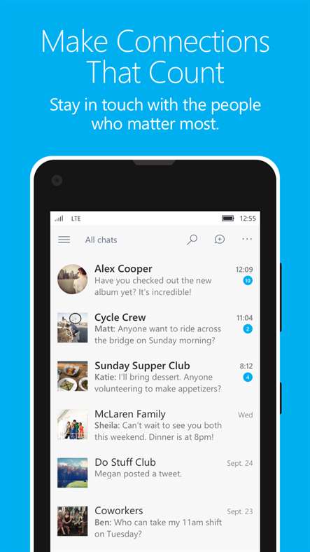 Προβάλετε τις ομάδες σας κατευθείαν στην εφαρμογή “Άτομα” και θα μπορείτε να απαντάτε σε μηνύματα γρήγορα με αλληλεπιδραστικές ειδοποιήσεις. Μοιραστείτε φωτογραφίες και συνδέσεις με τις ομάδες σας από άλλες εφαρμογές.