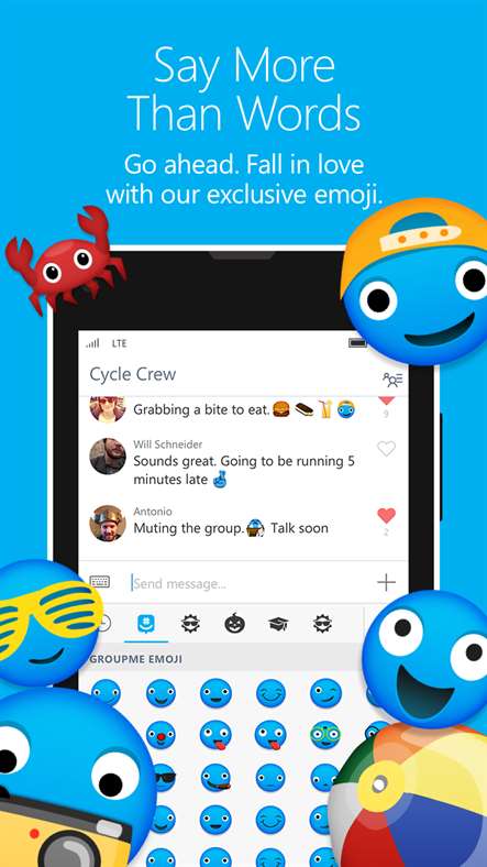 Θα ενθουσιαστείτε με τα αποκλειστικά emoji, ενώ μπορείτε επίσης να δημιουργείτε εικόνες meme και να μοιράζεστε GIF και βίντεο – όλα κατευθείαν από το GroupMe.