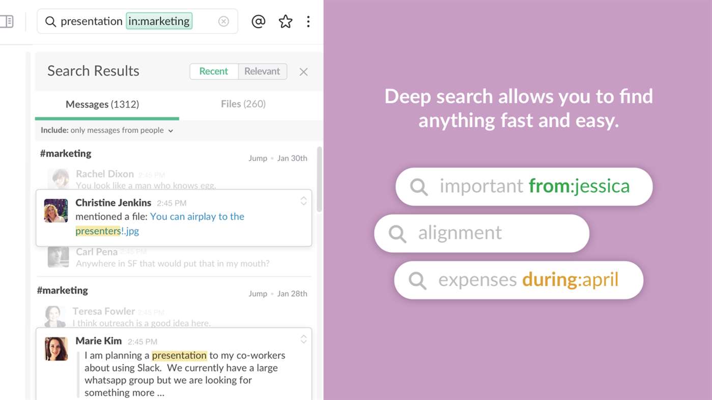 • Κοινή χρήση και επεξεργασία εγγράφων και συνεργασία με τα σωστά άτομα Slack