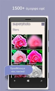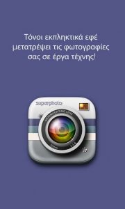 Η εφαρμογή SuperPhoto σας παρέχει δεκάδες εκπληκτικά εφέ για τις φωτογραφίες σας, που θα λατρέψετε.