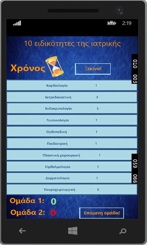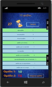 Χωριστείτε σε ομάδες όσων ατόμων θέλετε και προσπαθήστε να δώσετε όσες περισσότερες απαντήσεις μπορείτε να σκεφτείτε για κάθε ερώτηση,μέσα στο χρόνο που έχετε καθορίσει. Μπορείτε να επιλέξετε τον αριθμό γύρων που θα παιχτούν, ώστε να έχετε τη δυνατότητα να παίξετε ακόμα και αν ο χρόνος σας είναι περιορισμένος!Προκαλέστε τους φίλους σας σε μια..διαμάχη γνώσεων!