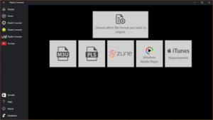 Ο Playlist Converter είναι μια εφαρμογή για μετατροπή και κοινή χρήση λιστών αναπαραγωγής και τη μεταφορά τους μεταξύ των Spotify, Napster και Deezer. Εισαγωγή αρχείων iTunes, YouTube, M3U, PLS, Zune και Windows Media Player.