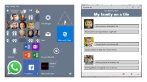 Εικόνες των παιδιών σας, του συντρόφου σας, των εγγονών σας, των γονέων σας ή των παππούδων σας. Βήμα 1: Δημιουργήστε μια λίστα με τα μέλη της οικογένειάς σας. Βήμα 2: συνδέστε μια εικόνα με κάθε μέλος της οικογένειας. Βήμα 3: συνδέστε ένα κεραμίδι στην οθόνη έναρξης. Βήμα 4: επιλέξτε ένα μέγεθος πλακιδίων. Βήμα 5: Τεντώστε το πλακάκι αρχικής οθόνης στο μέγεθος που θέλετε. Κατόπιν περιμένετε ένα λεπτό.