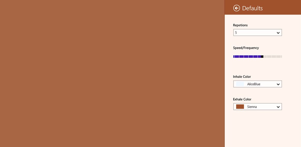 Όταν ξεκινήσετε την εφαρμογή, η οθόνη θα αρχίσει να ξεθωριάζει τα χρώματα μέσα και έξω. Συνδέστε την αναπνοή σας στην κίνηση, εστιάστε την αναπνοή σας, ηρεμήστε το μυαλό σας και ηρεμήστε.