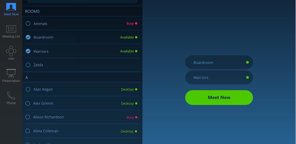 Το σύστημα βιντεοδιάσκεψης Zoom Rooms που βασίζεται σε λογισμικό χρησιμοποιεί εξοπλισμό επαγγελματικής ποιότητας για κάμερες, ηχεία και οθόνες, καθιστώντας το την πιο ευέλικτη λύση βίντεο. Συνδεθείτε εύκολα με συμμετέχοντες σε κινητές συσκευές, επιτραπέζιους υπολογιστές και άλλα δωμάτια.