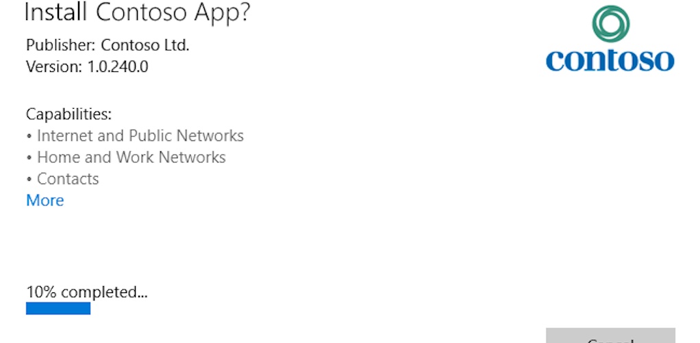Το Πρόγραμμα εγκατάστασης εφαρμογής παρουσιάζει τις πληροφορίες του πακέτου, όπως το όνομα της εφαρμογής, τον εκδότη, την έκδοση, το λογότυπο εμφάνισης και τις δυνατότητες που ζητά η εφαρμογή. Ξεκινήστε απευθείας να χρησιμοποιείτε την εφαρμογή, χωρίς ταλαιπωρία.