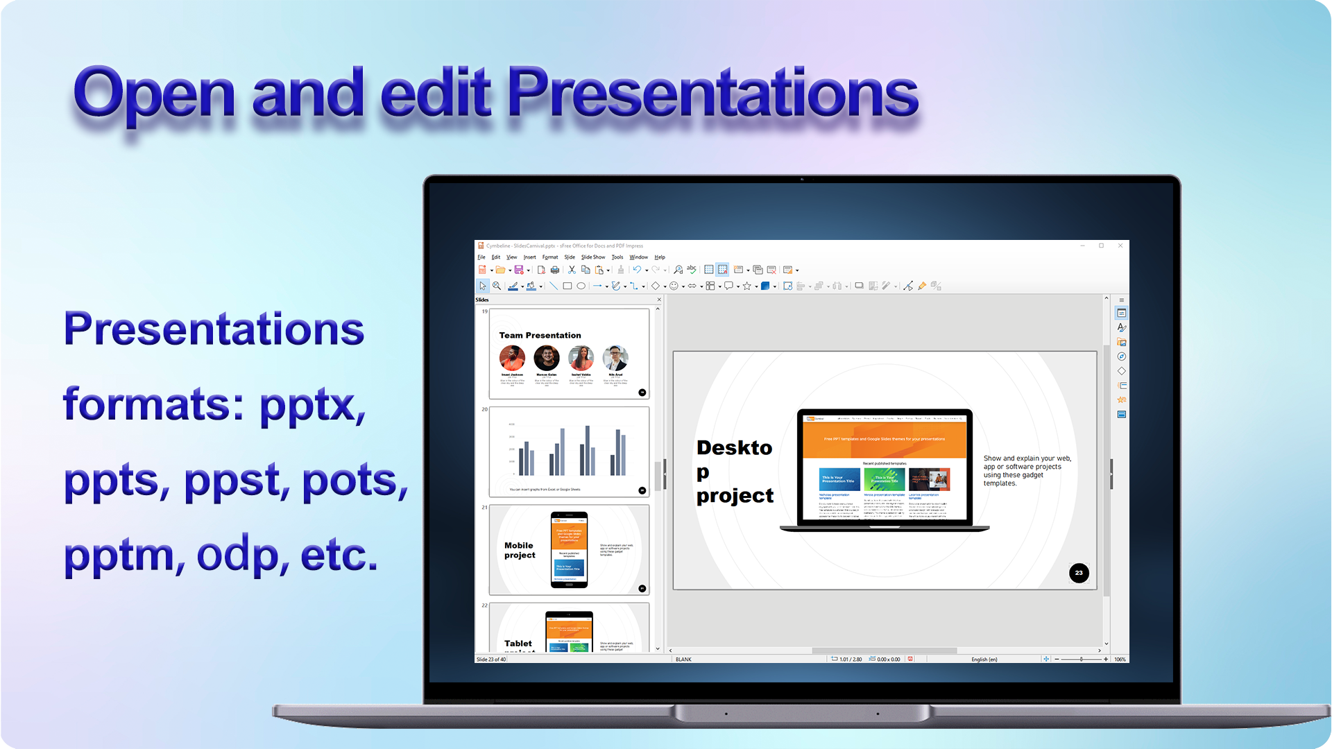 Είναι συμβατό με το Microsoft Office (Word, Excel, PowerPoint & Txt), τα Έγγραφα Google, τα Φύλλα Google, τις Παρουσιάσεις Google και τη μορφή OpenOffice για Windows.