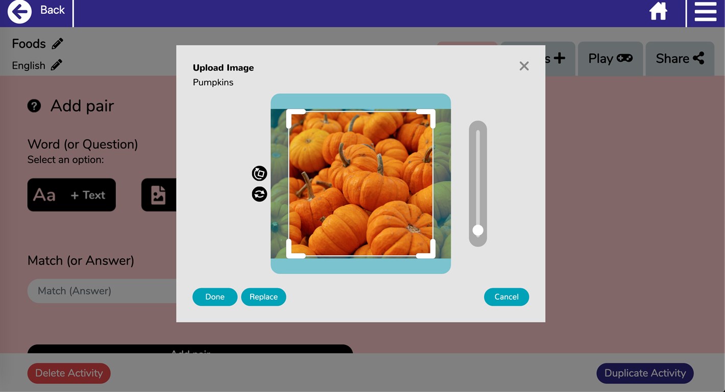 Το μόνο που χρειάζεστε είναι να εισαγάγετε το λεξιλόγιο ή τις ερωτήσεις και τις απαντήσεις και το Educandy μετατρέπει το περιεχόμενό σας σε δροσερές διαδραστικές δραστηριότητες.