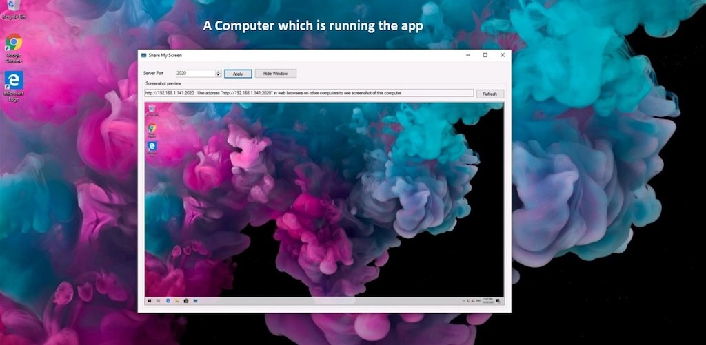 Εκτελέστε αυτήν την εφαρμογή σε υπολογιστή και άλλοι υπολογιστές που συνδέονται στον υπολογιστή μπορούν να δουν στιγμιότυπο οθόνης του υπολογιστή χρησιμοποιώντας ένα πρόγραμμα περιήγησης ιστού.