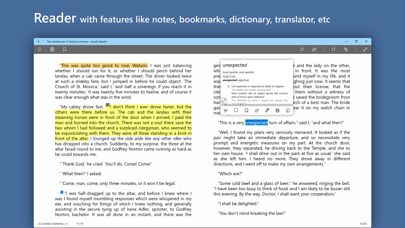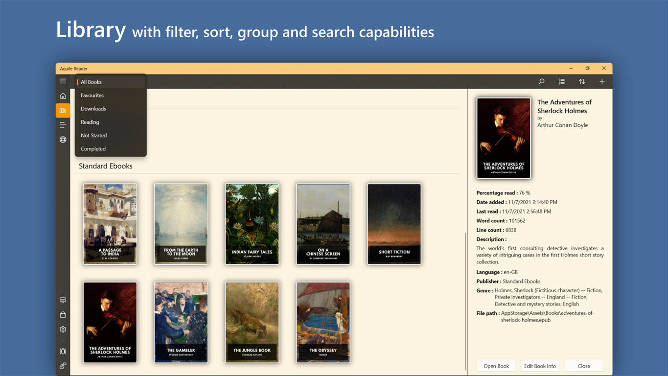 Το Aquile Reader είναι μια σύγχρονη εφαρμογή eBook Reader για Windows με ισχυρά χαρακτηριστικά και χειριστήρια, ιδιαίτερα εύκολα στη χρήση, προσαρμόσιμο και διαισθητικό περιβάλλον εργασίας χρήστη.