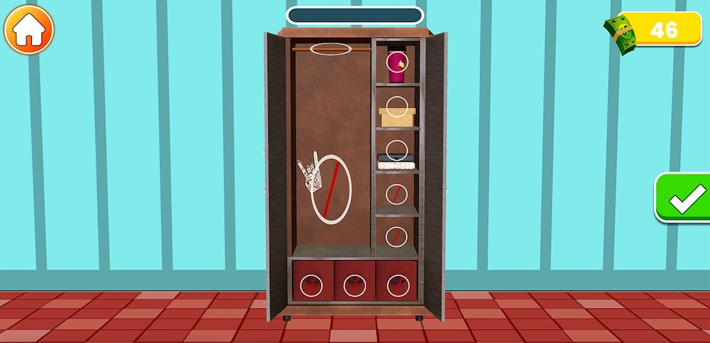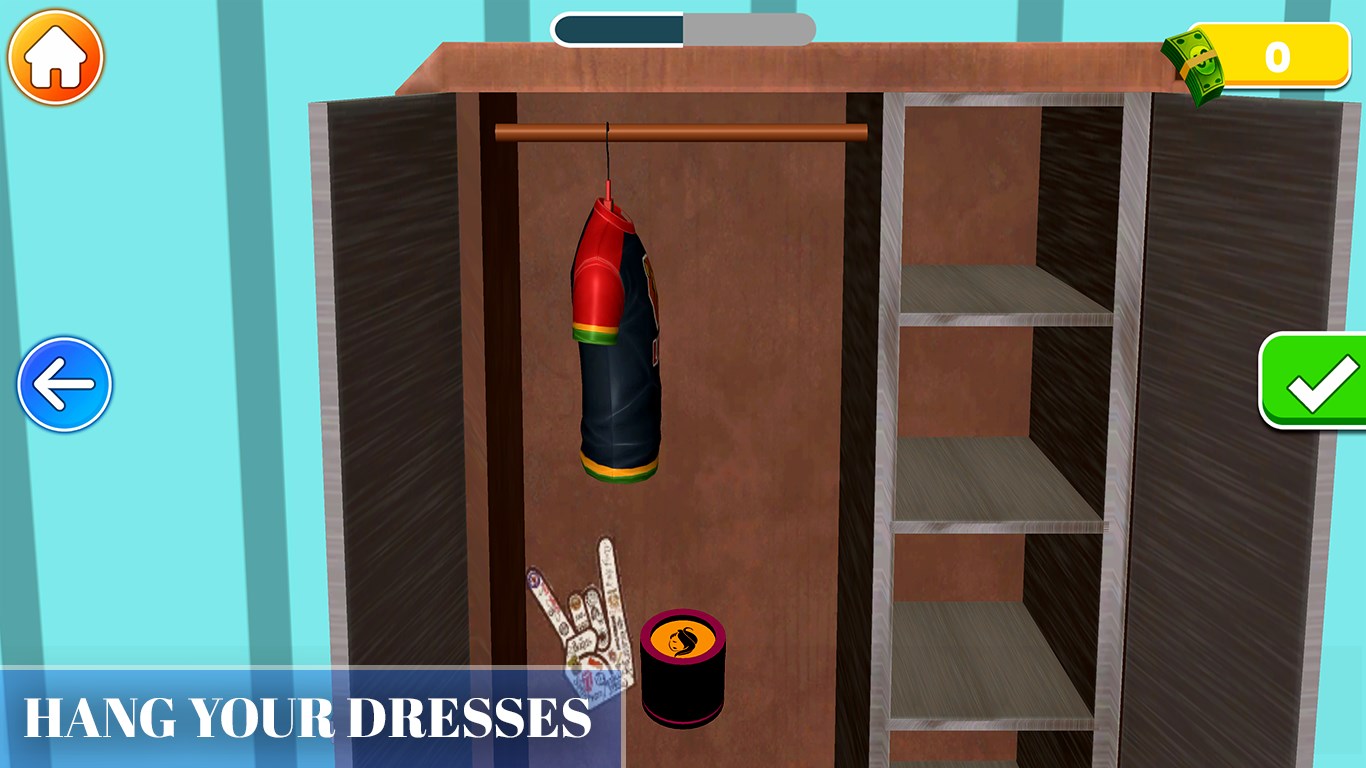 Μετακινηθείτε στην ντουλάπα, αποσυσκευάστε αντικείμενα και βάλτε τα αντικείμενα στη θέση τους.