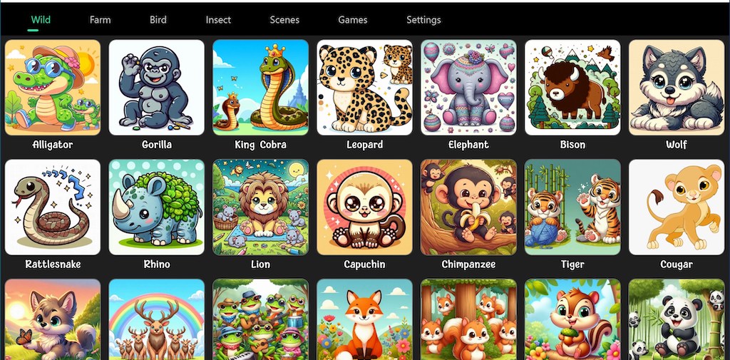 Η εφαρμογή προσφέρει ένα απλό και εύχρηστο περιβάλλον, όπου με ένα μόνο άγγιγμα μπορείτε να ακούσετε τους ήχους των ζώων και να έρθετε πιο κοντά στον μαγικό κόσμο τους.