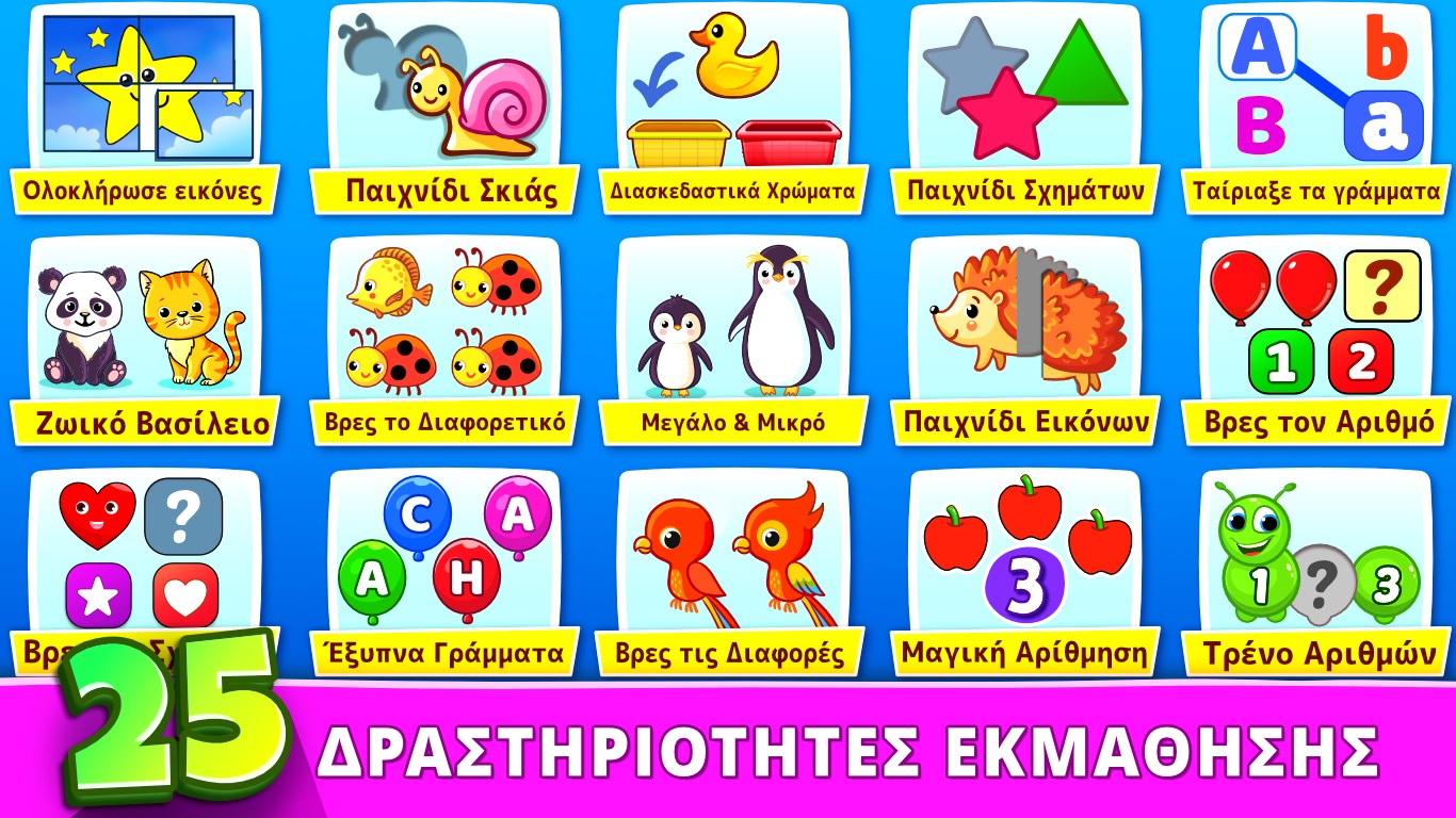 Διασκεδαστικά μαθησιακά παιχνίδια για παιδιά που βοηθούν στην εκμάθηση αριθμών, μέτρησης, χρωμάτων, σχημάτων, συντονισμού, κινητικών δεξιοτήτων, μνήμης, και πολλά άλλα!